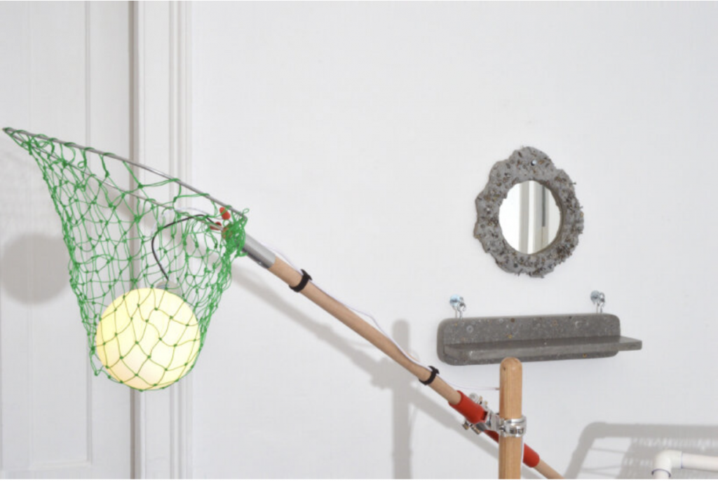 A standout among the pieces is Catch & Release by Fort Standard, a floor lamp that fuses a soil tamper, tube clamps, and a fishing net into a singular glowing sculpture. Christian Borger’s modular lamp crafted from ceiling louvers offers a linear, architectural elegance, while Office of Tangible Space’s Street Broom Stool is both humorous and practical, using broom bristles for the seat and handles for structure. These works aren’t just clever—they’re conversation starters that redefine what materials can do when freed from their original purpose.