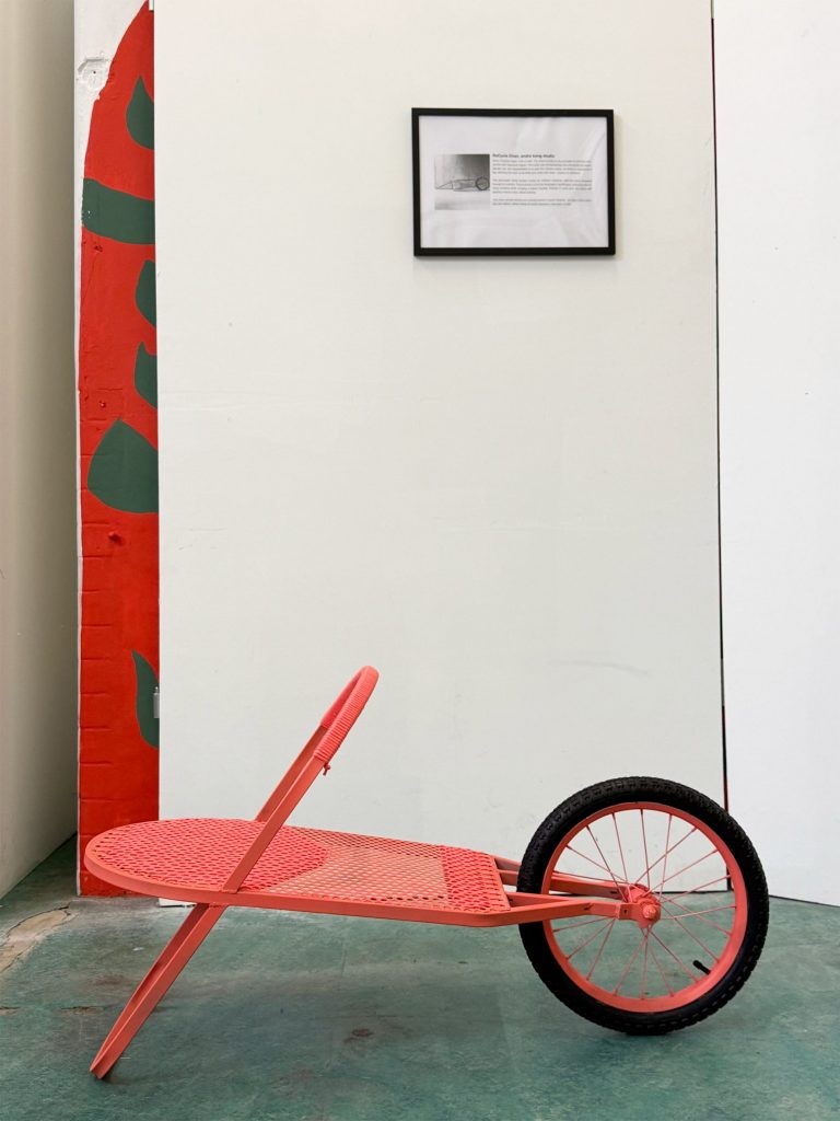 Further additions to the show carry that same thread of thoughtful reuse. Pearson Lloyd updated a pair of IKEA Tarno chairs using salvaged plywood from a previous exhibition, while designer Charlie Boyden transformed a beechwood daybed once owned by his partner’s grandfather into the sculptural Ted Chair—a tribute to lineage, labor, and form. Architect Andre Kong repurposed a bike trailer into the ReCycle Seat, complete with wheels, and Studio Tip injected a dose of provocation into a discarded film prop, crafting a BDSM-inspired lounge. Each piece not only diverts waste from landfill but also reframes the idea of what makes design meaningful in the first place.