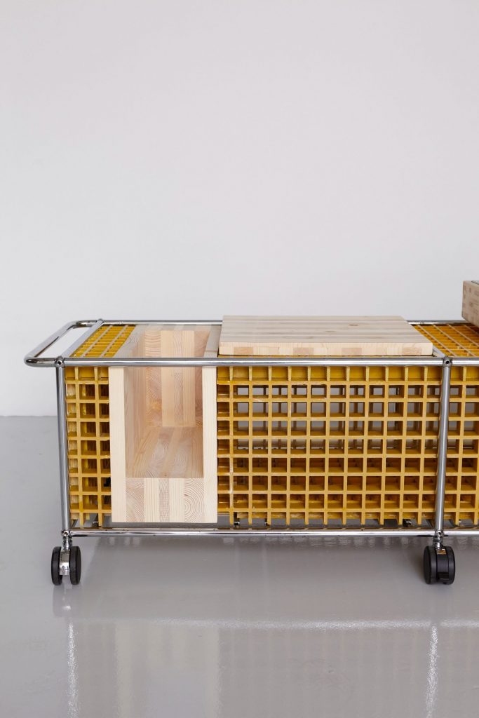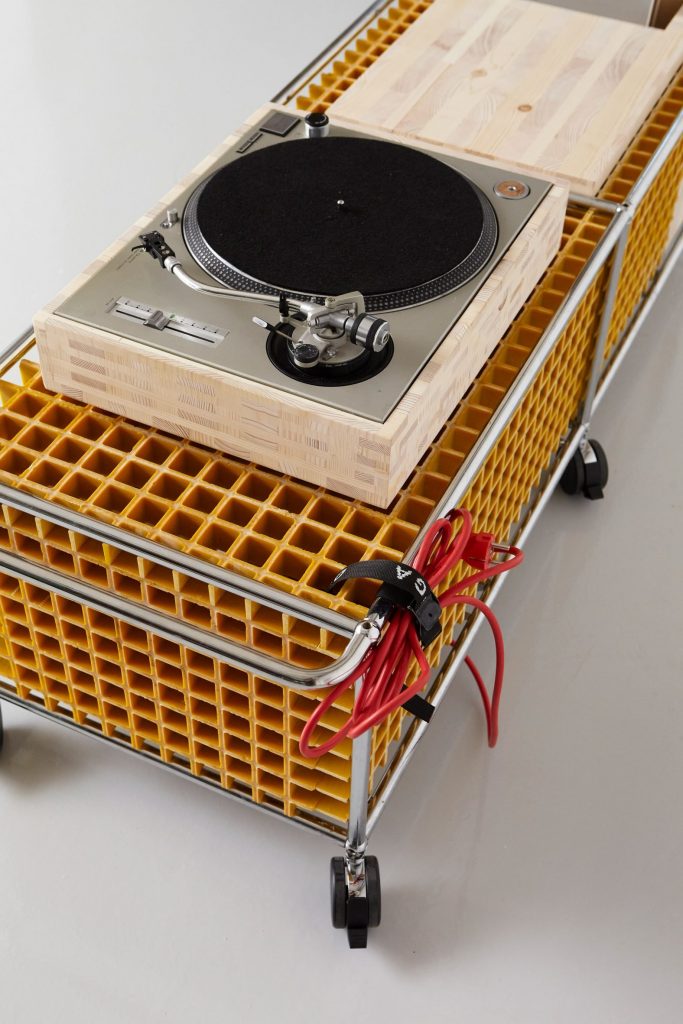 Rather than seeing the scuffed and aged furniture as a relic of corporate life, Andersen saw an opportunity. After converting the old cabinets into lowboards, he challenged nine designers to customize the units with personality and purpose. The only guideline: materials had to be self-sourced and reused. The results ranged from the poetic to the provocative. Kjetil Smedal repurposed grated fiberglass from a fishing boat yard and glued-laminated timber from a construction site to create a fully functioning record player console, complete with vinyl storage. In contrast, Lloyd Winter filled his unit with woodchips and wild grasses, encasing it in rusted steel mesh to mimic nature reclaiming forgotten human objects.