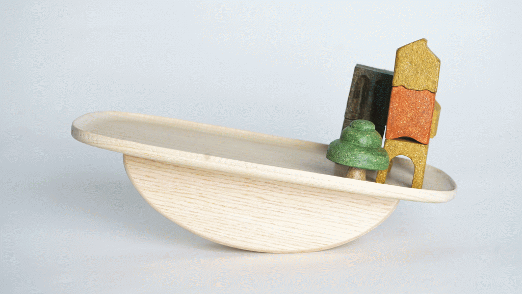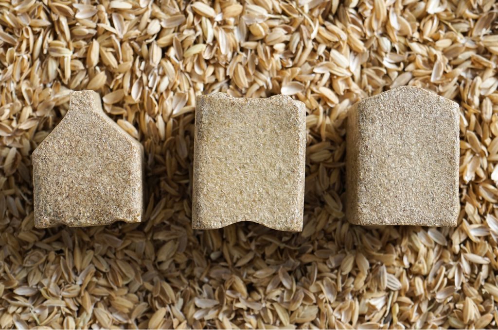 From home essentials to playtime fun, rice waste continues to inspire innovation. Designer Subin Cho’s Rice Husk Village transforms discarded rice husks into an imaginative toy set that’s as eco-conscious as it is entertaining. The game consists of modular building blocks molded from rice husks, which children can use to create miniature villages, cities, and bridges, all atop a balancing tray that turns construction into a playful challenge.