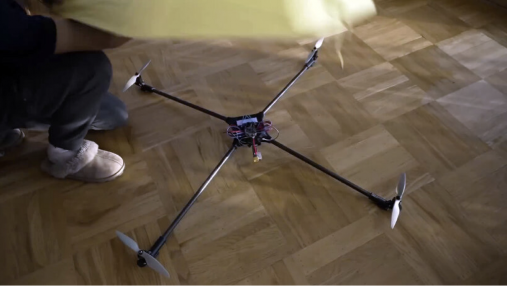 The frame incorporates carbon fiber tubes and custom printed parts to support the propellers, keeping the structure light enough to take flight but strong enough to remain stable. Building the prototype involved extensive trial and error. Early attempts proved that attaching propellers alone was not enough, and that the drone required careful balance, structural integrity, and precise power distribution to operate safely.