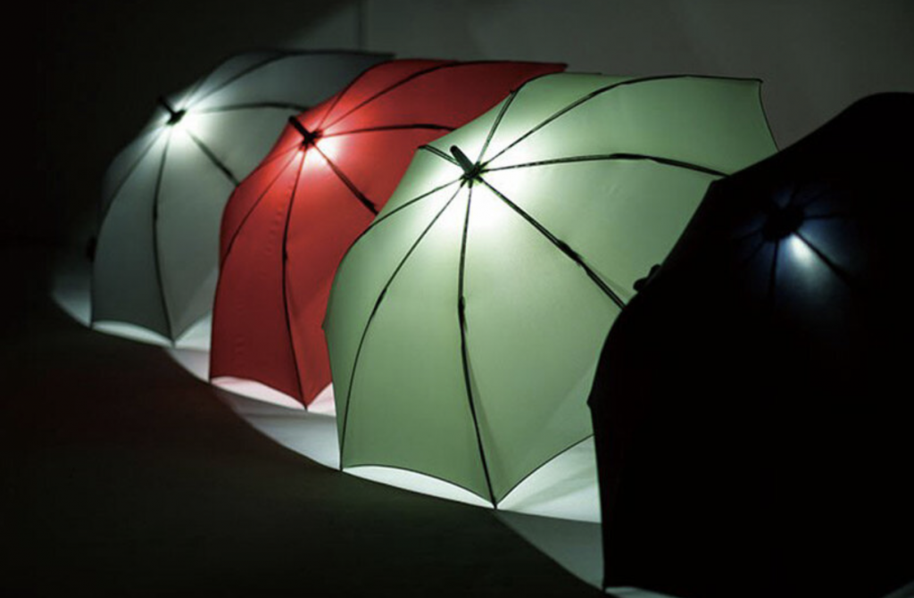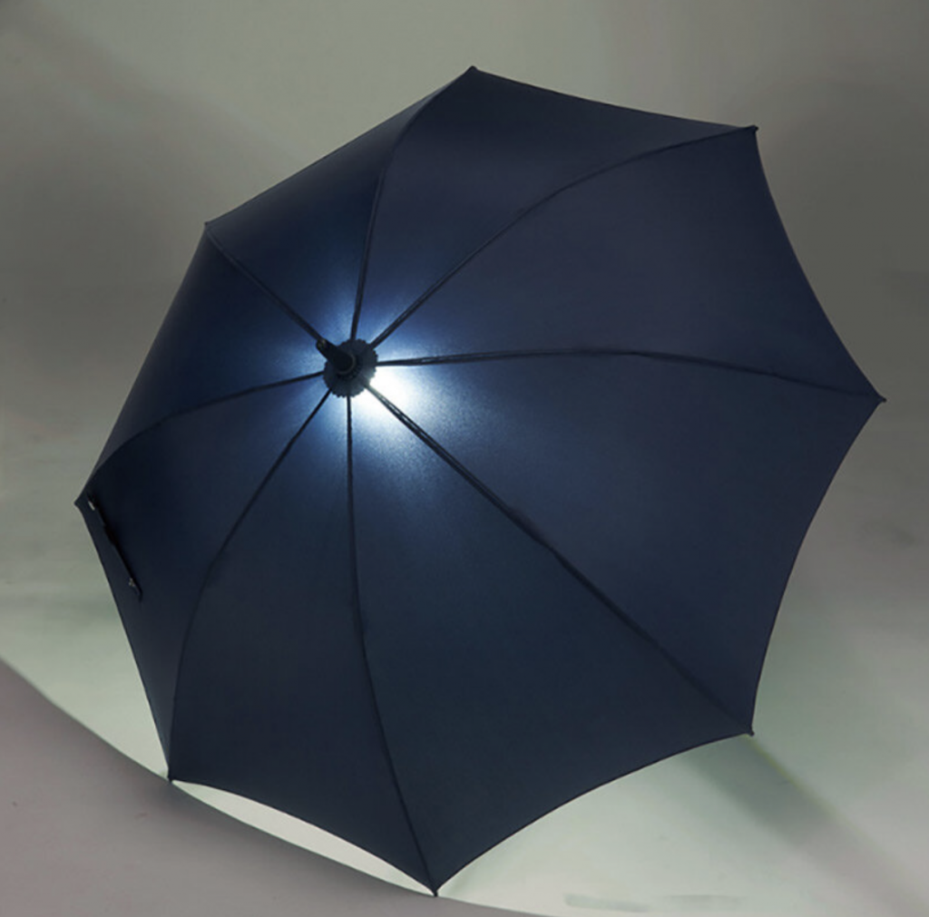 During daytime hours, the umbrella operates like any standard model, but as evening approaches, a simple press of a button lights up the canopy from beneath. The LEDs glow through the fabric to increase visibility for both the user and surrounding pedestrians. The effect is gentle rather than harsh, turning the underside of the umbrella into a softly lit personal dome that feels surprisingly atmospheric.