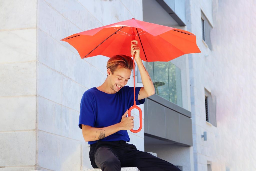 Israeli designer Liad David takes a different angle on umbrella innovation. Instead of adding features, she reimagines the relationship between user and object. Her MYU umbrella is built around the principle of repairability, giving owners the ability to replace components themselves using accessible parts like screws, rods, and fabrics. This shift encourages long term use rather than disposal, reframing the umbrella as an enduring companion.