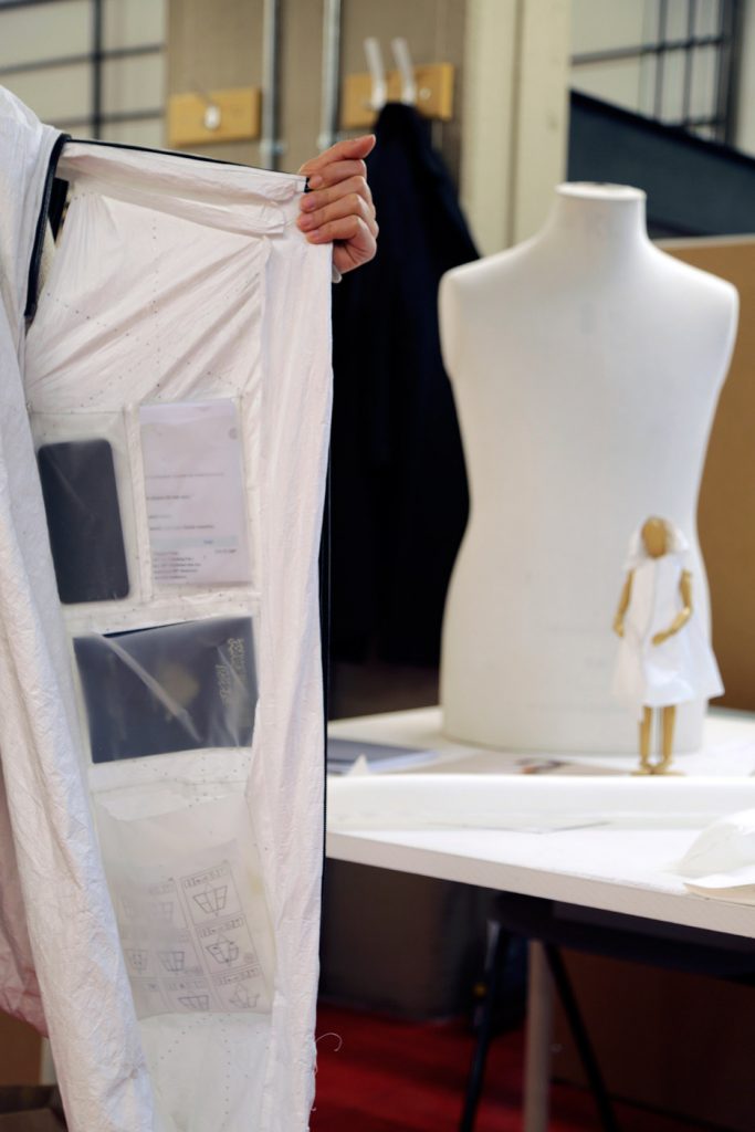The garment also includes inner pockets for storing essential items like passports and documents, ensuring that refugees can keep their belongings safe as they move from one location to another. This project, born from collaboration between interior design and textile students, emphasizes both sustainability and cost-effectiveness — key factors when designing for those in crisis.