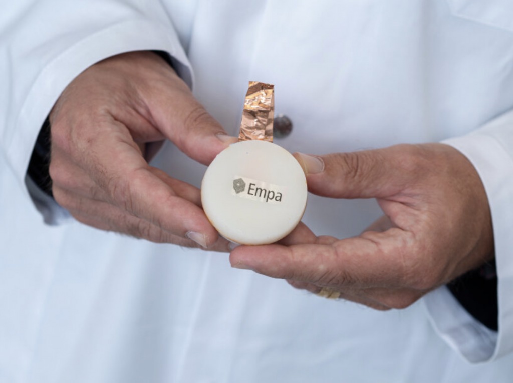 If Flint’s work reimagines batteries as manufactured objects, researchers at Empa in Switzerland take an even more radical approach. Their 3D printed biodegradable “battery” is alive. Developed in the Cellulose and Wood Materials laboratory, this device combines two types of fungi into a microbial fuel cell that converts sugar into electricity. After powering small devices for several days, it quite literally digests itself from the inside.