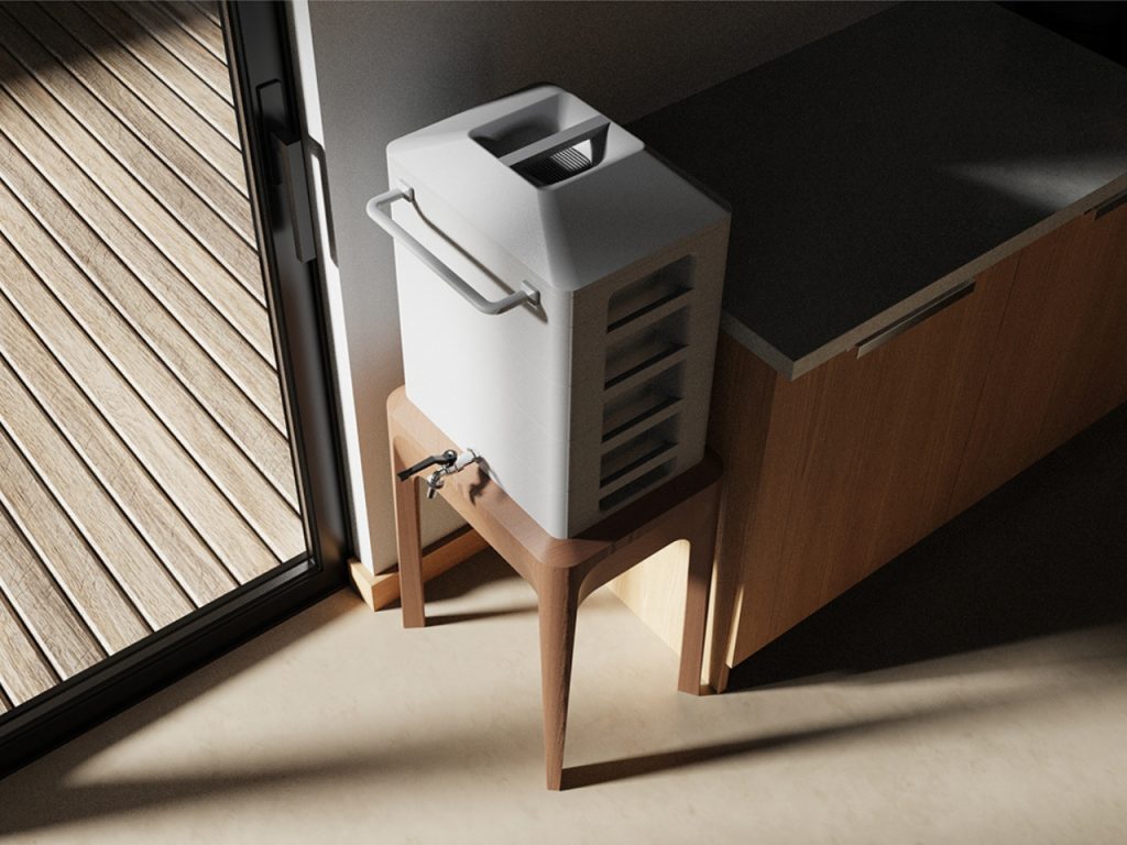 The device adapts to different homes through a reversible base that changes its height and footprint. A built-in air filter prevents odors, while temperature and humidity sensors help users keep conditions stable without constant attention. The three-bin internal design allows worms to migrate naturally toward fresh food, and a spigot makes harvesting compost as simple as pouring from a tap.