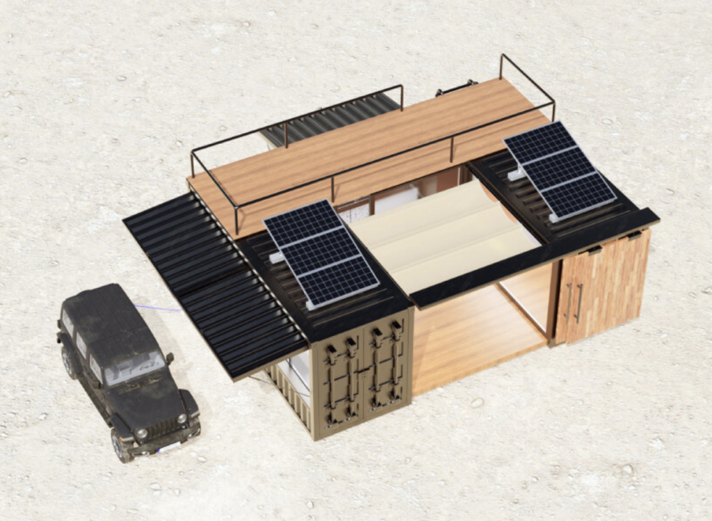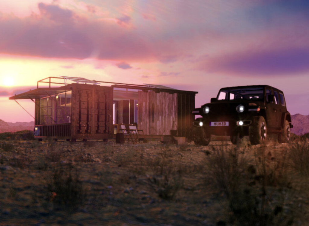If Calaak’Oncept transforms containers into leisure infrastructure, Jeep Japan imagines them as mobile sanctuaries. Developed in collaboration with housing brand Dolive, the Jeep container house is conceived as a traveling home that can be assembled or dismantled almost anywhere. The concept aligns naturally with Jeep’s adventurous identity, proposing a compact dwelling that brings the comforts of home into remote landscapes.