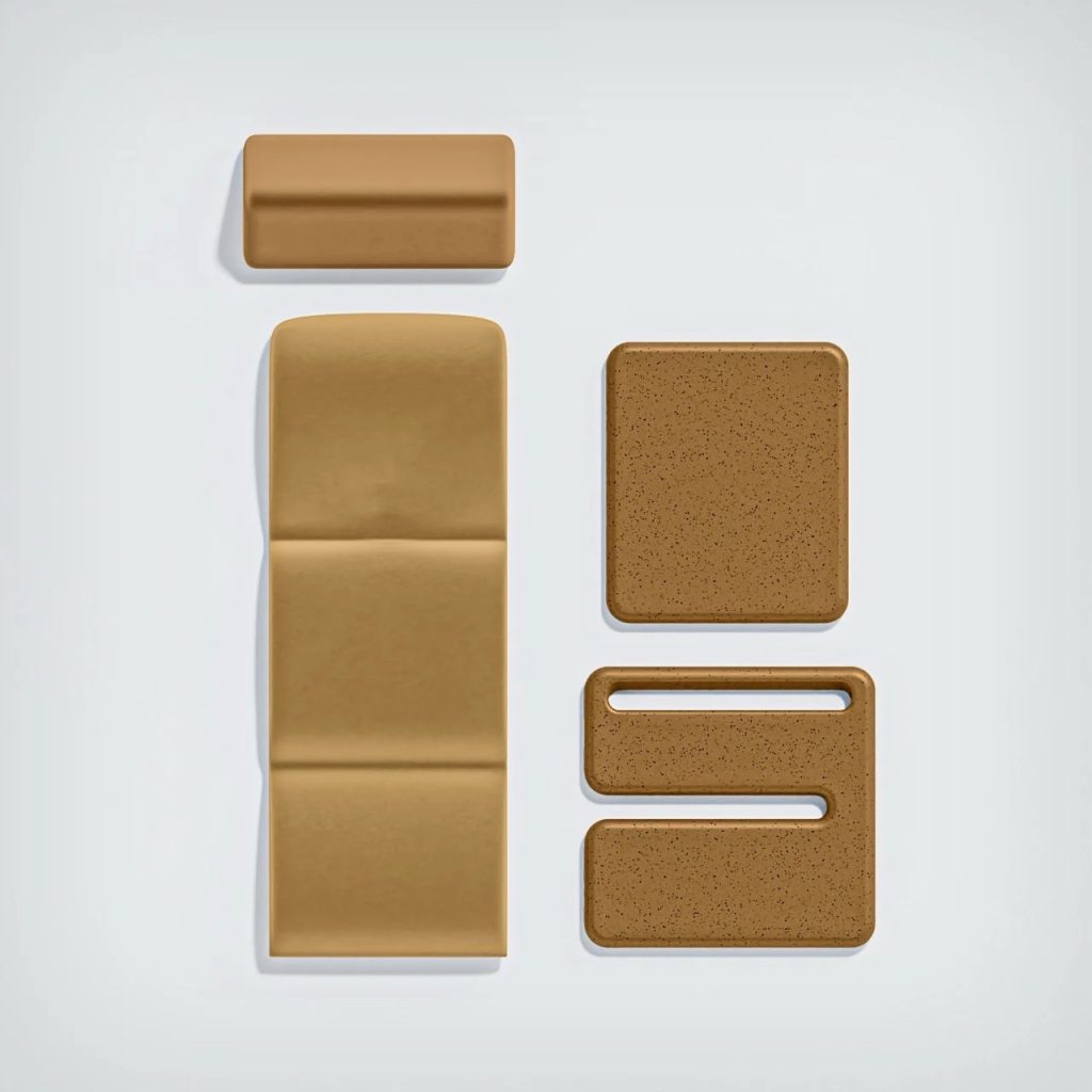Marka builds on this history by reinterpreting the traditional form as a modular seating system. The design can be assembled and reassembled without tools, using two structural panels and a padded cover that interlock with ease. One configuration allows two people to sit close together, encouraging conversation and shared time. Another configuration creates a low personal chair designed for quiet relaxation and reflection.